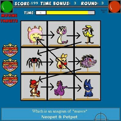 "moving targets" message, the targets will always move one space to the right.