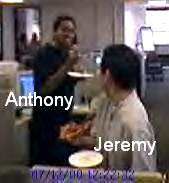 4th Top Left : Jeremy and David eating pizza.