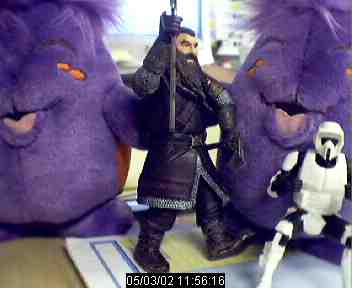 A Warhammer fan proudly displays his prized possession.