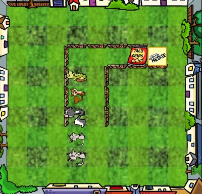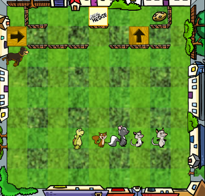 - Characters will go right when they hit the perimeter of the garden and fences.