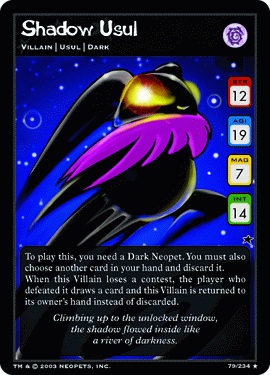 Villains are kind of like a Hero and Experienced Neopets combined. You don't need to tap a neopet to play them, but you do need a certain type to play them. They have good stats like Heroes, but unlike Heroes, Villains usually have bad effects. And also, villains are discarded after every contest.