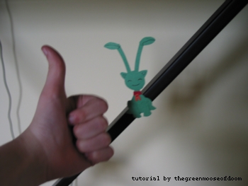 Cut down the line you drew. These are the ear stalks. When you glue them to the head, make sure that they, like the ears, are glued from behind. And also make sure to have the ear stalks facing opposite each other and outwards. It may look funny if you don't. Finish off the ear stalks by gluing two slightly pointy oval shapes to the top of each one. Glue the oval on top of the stalk, not behind. Now that your head is finished, you can use the pen to draw in the facial/ear features.