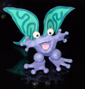 After the clay has fully cooled, glue the legs to the feet. Once the glue has dried fully, paint the eyes with the clear nail polish, or other shiny clear paint. Voila! Your very own polymer clay Quiggle!!!