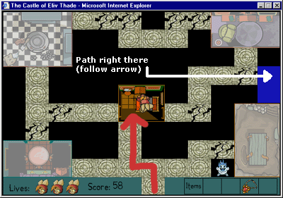 There's a secret path in the Castle of Eliv Thade. To use it, from the starting position, go up 1, left 1, the click either up 1, 2, or 3 and solve the anagram and you will move to that space and a path will appear behind you!