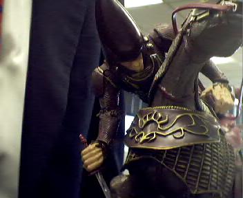 A Warhammer fan proudly displays his prized possession.
