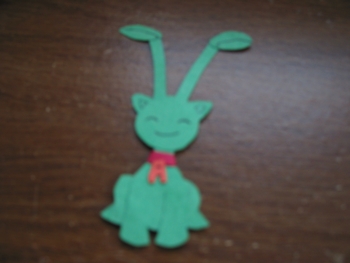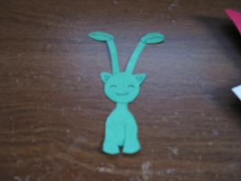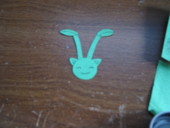 Cut down the line you drew. These are the ear stalks. When you glue them to the head, make sure that they, like the ears, are glued from behind. And also make sure to have the ear stalks facing opposite each other and outwards. It may look funny if you don't. Finish off the ear stalks by gluing two slightly pointy oval shapes to the top of each one. Glue the oval on top of the stalk, not behind. Now that your head is finished, you can use the pen to draw in the facial/ear features.