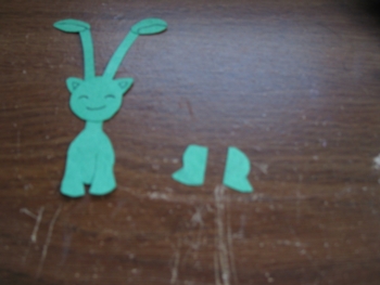 Cut out the two funny shapes shown below. These are the back legs. Try and make them as identical as possible. Glue them to your Aisha from behind.