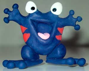 This is by far the most difficult part. Don't get too concerned at making the mouth perfect right away, because you WILL mess it up in the next few steps. Just shape out the general shape of the mouth, using fingers, toothpicks, whatever. Look at the happy Quiggle image on Neopets and shape the mouth more or less like that. Remember the mouth takes up most of the body. In this image I have also started to form the hands and fingers, much the same as the feet were made in step 4.