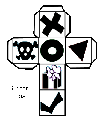 I hope you enjoyed this little instruction guide on making your own Dice-A-Roo game. I realize that I've changed some of the dice (e.g.. the Red dice has no skull). This is to make the game more enjoyable and fair as I doubt that the online version of Dice-A-Roo has a 1 in 6 chance of rolling each of the possibilities (well, plus I keep losing on the first die in Dice-A-Roo!!) If you have any comments, questions, or concerns feel free to neomail me.